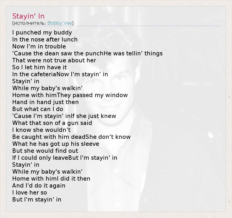 А как ты думаешь, о чем песня "Stayin' In" ?