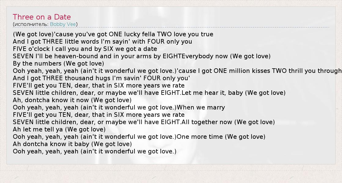 А как ты думаешь, о чем песня "Three on a Date" ?