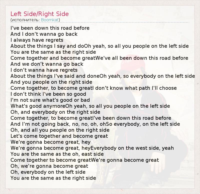 А как ты думаешь, о чем песня "Left Side/Right Side" ?
