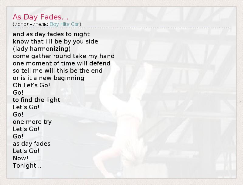 А как ты думаешь, о чем песня "As Day Fades..." ?
