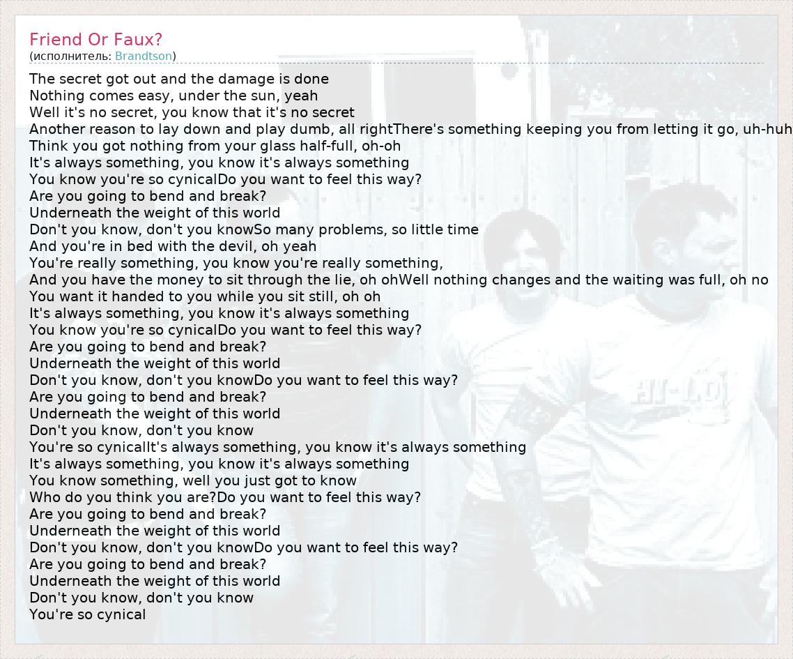 А как ты думаешь, о чем песня "Friend Or Faux?" ?