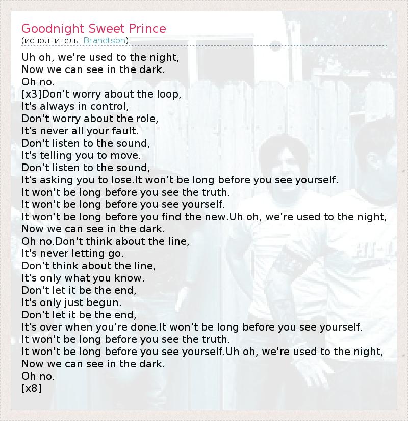 ГлавнаяИсполнителиBrandtsonGoodnight Sweet Prince