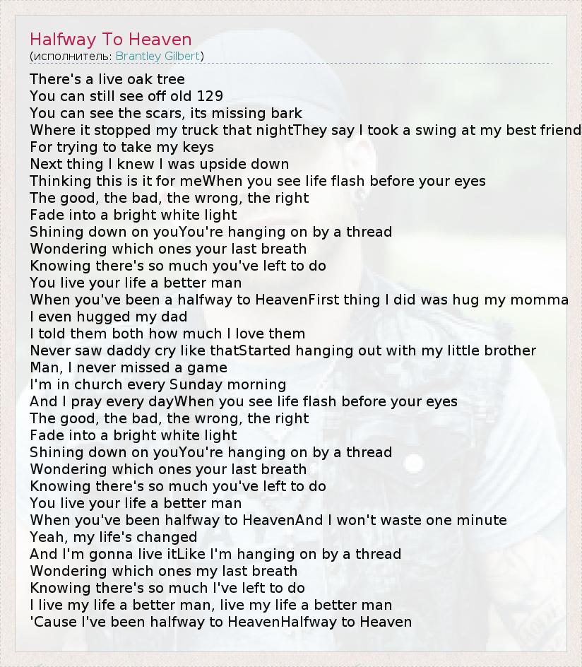 'Cause I've been halfway to HeavenHalfway to Heaven