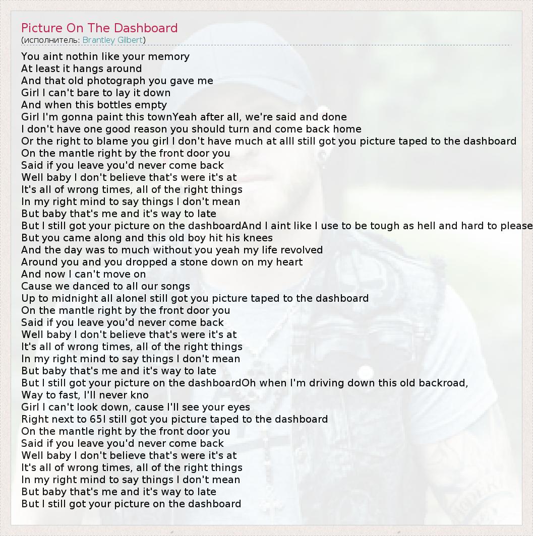 А как ты думаешь, о чем песня "Picture On The Dashboard" ?