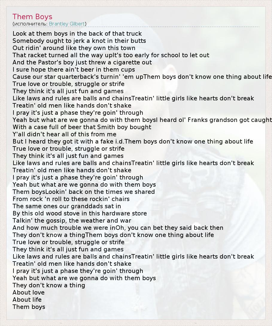 Yeah but what are we gonna do with them boysI heard ol' Franks grandson got caught