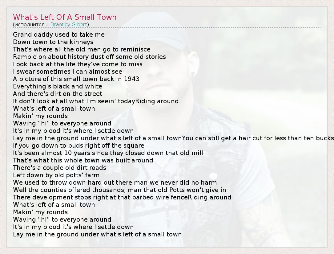 ГлавнаяИсполнителиBrantley GilbertWhat's Left Of A Small Town