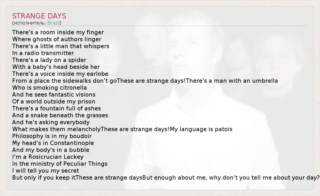 А как ты думаешь, о чем песня "STRANGE DAYS" ?