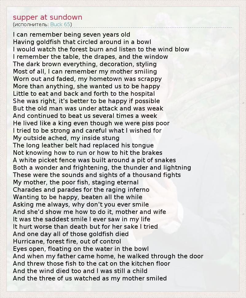 А как ты думаешь, о чем песня "supper at sundown" ?