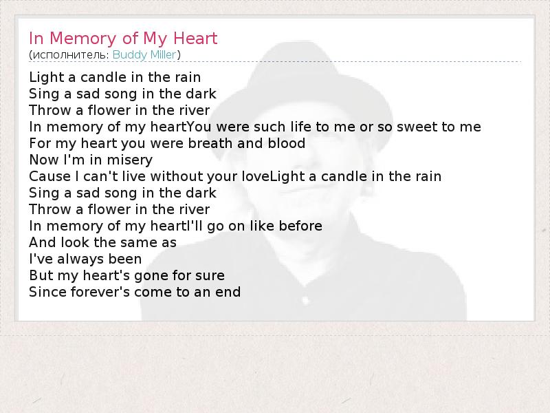 А как ты думаешь, о чем песня "In Memory of My Heart" ?