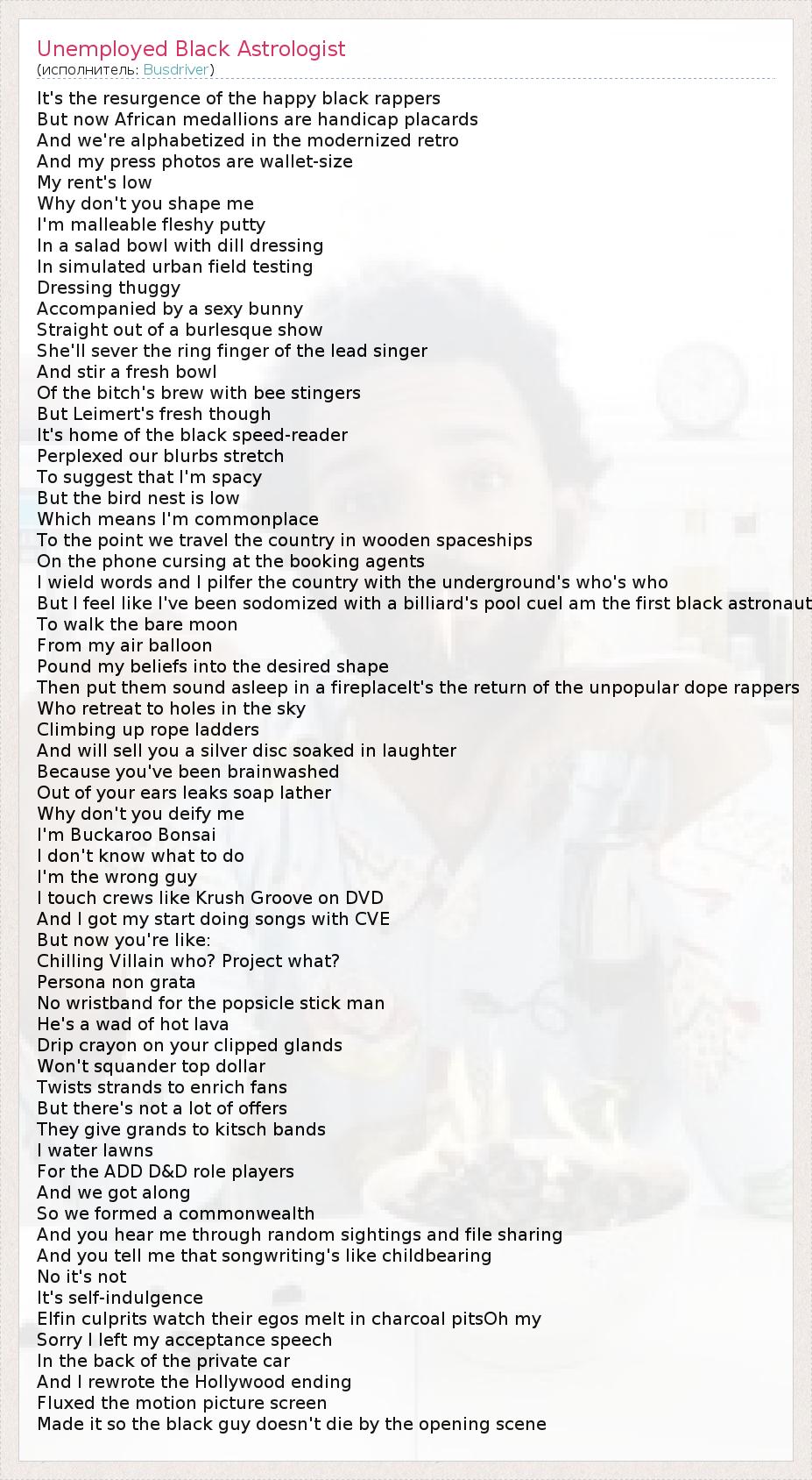 А как ты думаешь, о чем песня "Unemployed Black Astrologist" ?