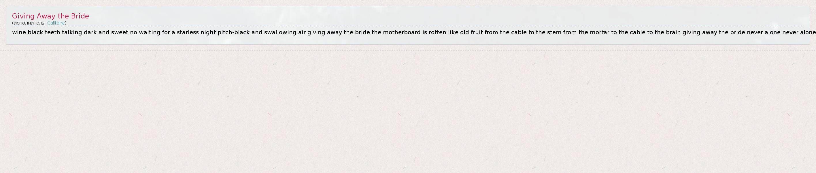 ГлавнаяИсполнителиCalifoneGiving Away the Bride