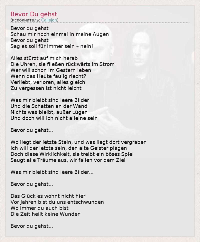А как ты думаешь, о чем песня "Bevor Du gehst" ?