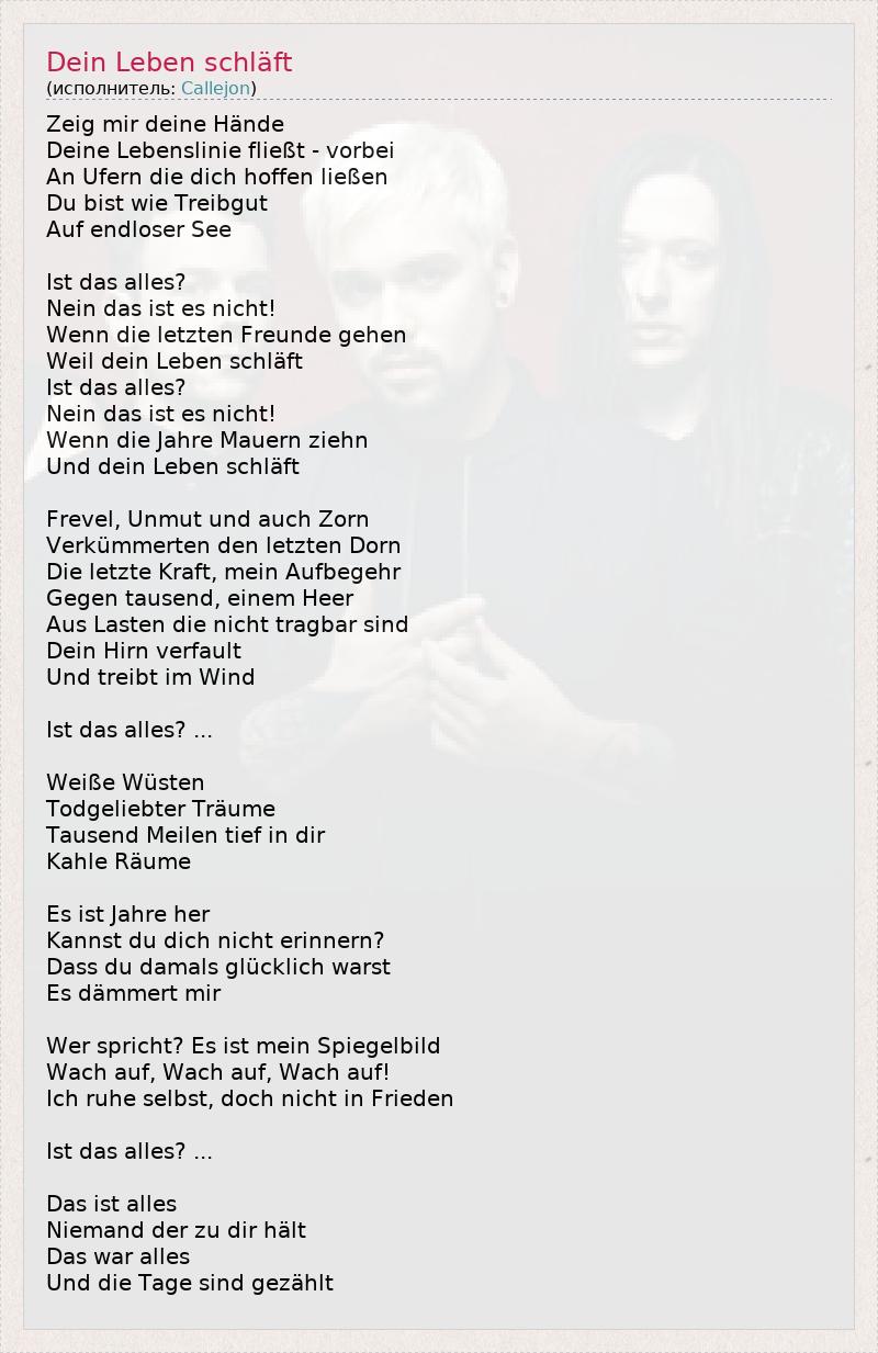 А как ты думаешь, о чем песня "Dein Leben schläft" ?