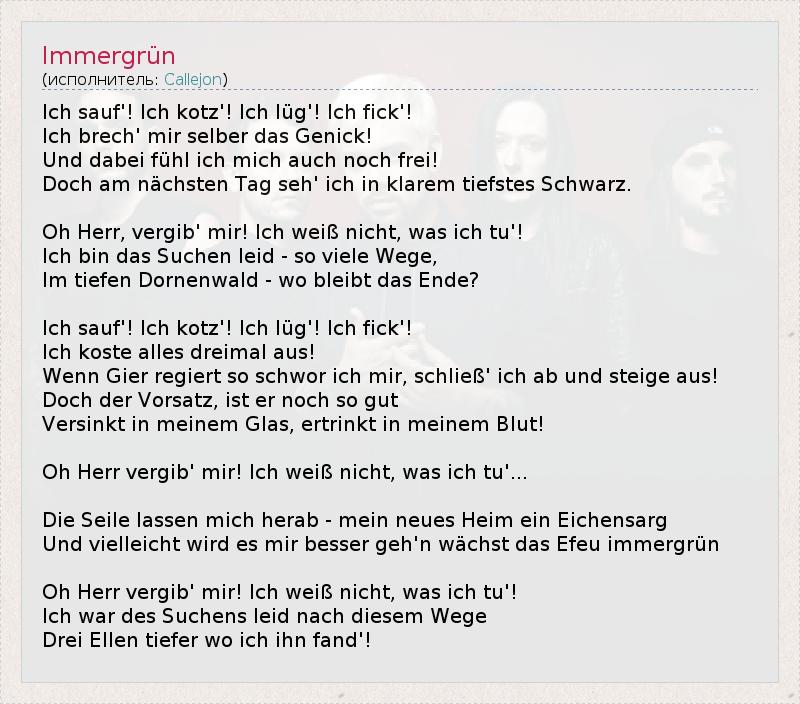 Und vielleicht wird es mir besser geh'n wächst das Efeu immergrün