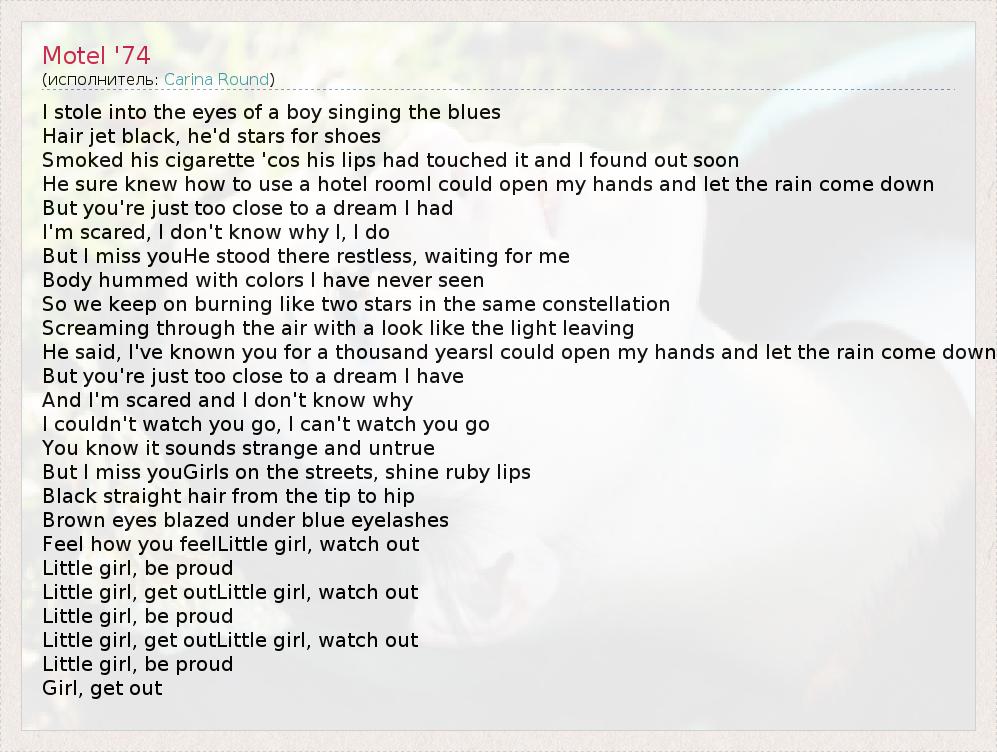 Это интересно:Carina Round is a British singer/songwriter who hails from Wolverhampton. She was born in 1979 in the Low Hill area of the city and grew up listening to her turntable given to her for her fifth birthday. Coming from Italian stock, at 21 she put out The First Blood Mystery and three years later, she released The Disconnection to a fair amount of critical acclaim. Comparisons are frequently drawn to PJ Harvey, though Round would contend that she is more directly influenced by Patti Smith.In the summer of ‘96, following a gig in a basement acoustic club in Wolverhampton, Carina was given a three-night support at Ronnie Scott's club in Birmingham. This led to support slots with the likes... продолжение