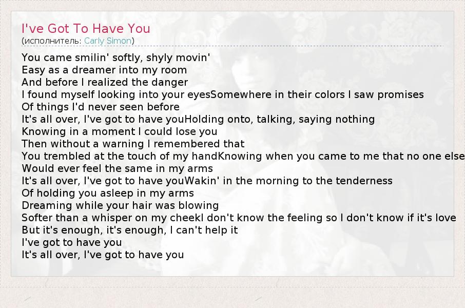 А как ты думаешь, о чем песня "I've Got To Have You" ?