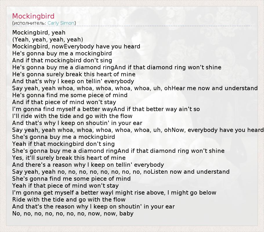 А как ты думаешь, о чем песня "Mockingbird" ?