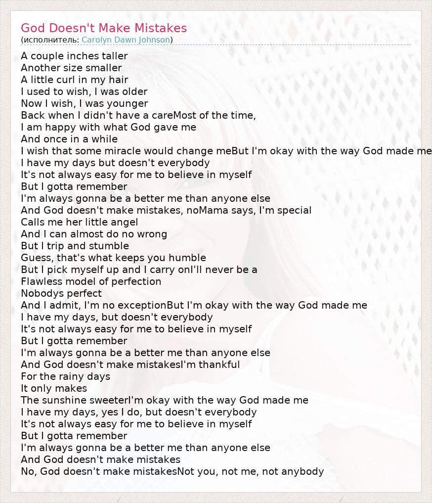 А как ты думаешь, о чем песня "God Doesn't Make Mistakes" ?