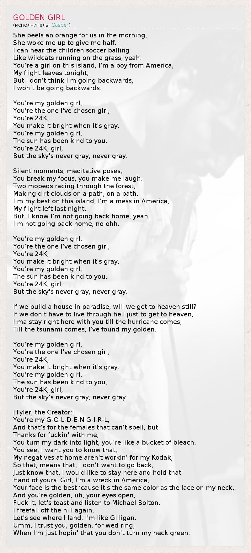 А как ты думаешь, о чем песня "GOLDEN GIRL" ?