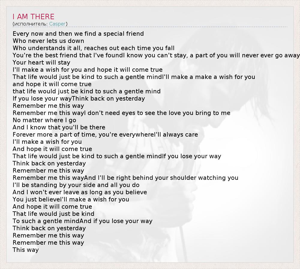 А как ты думаешь, о чем песня "I AM THERE" ?