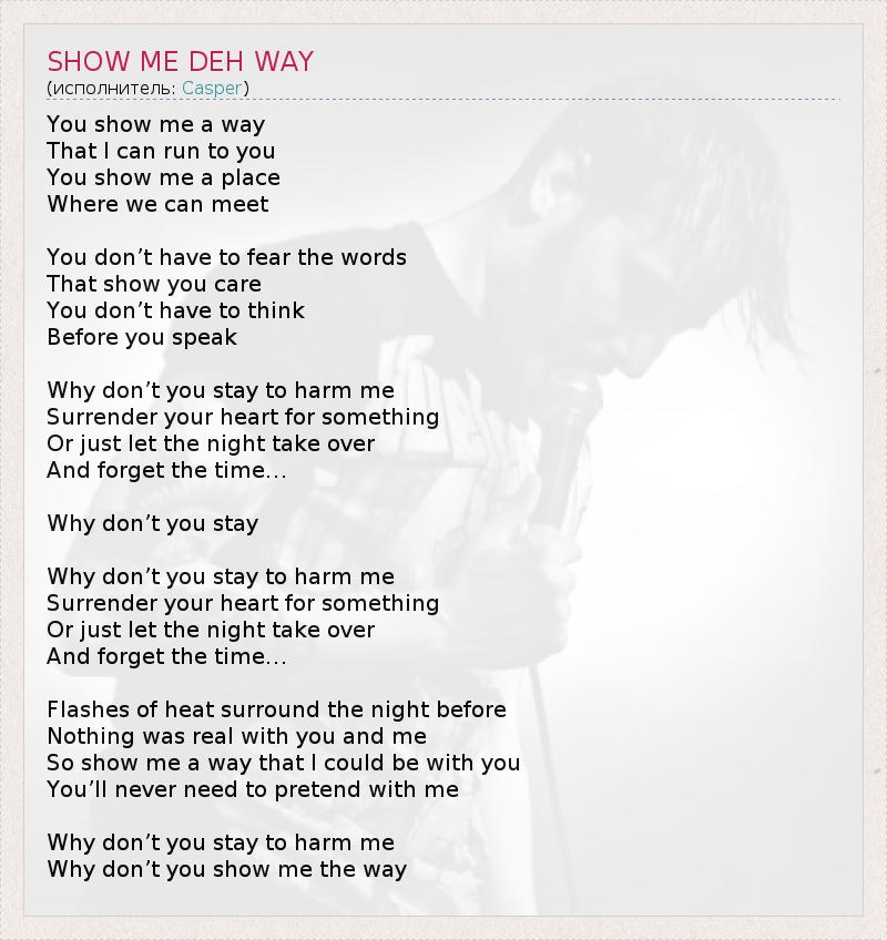 А как ты думаешь, о чем песня "SHOW ME DEH WAY" ?