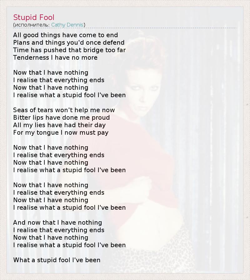 А как ты думаешь, о чем песня "Stupid Fool" ?
