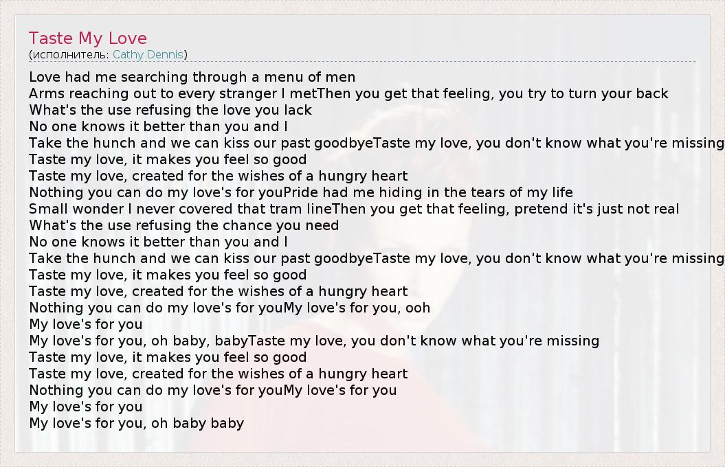 А как ты думаешь, о чем песня "Taste My Love" ?