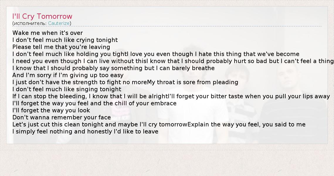 А как ты думаешь, о чем песня "I'll Cry Tomorrow" ?