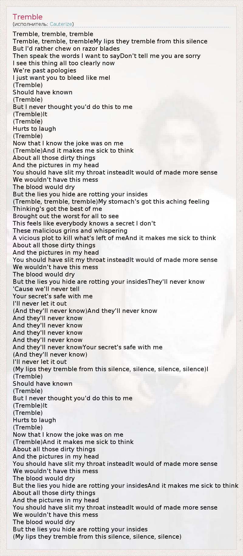 Tremble, tremble, trembleMy lips they tremble from this silence