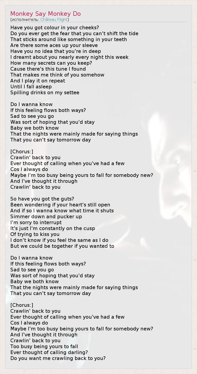 А как ты думаешь, о чем песня "Monkey Say Monkey Do" ?