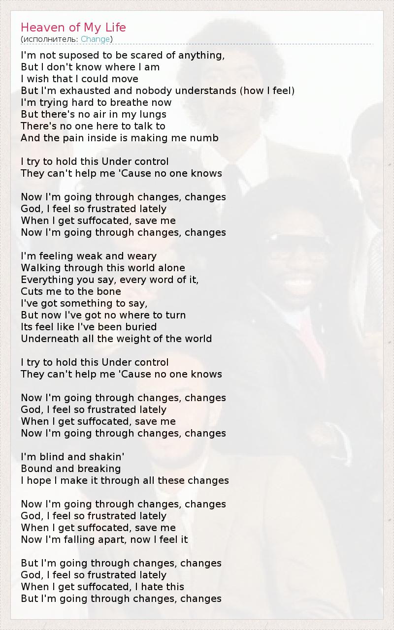 Now I'm going through changes, changes