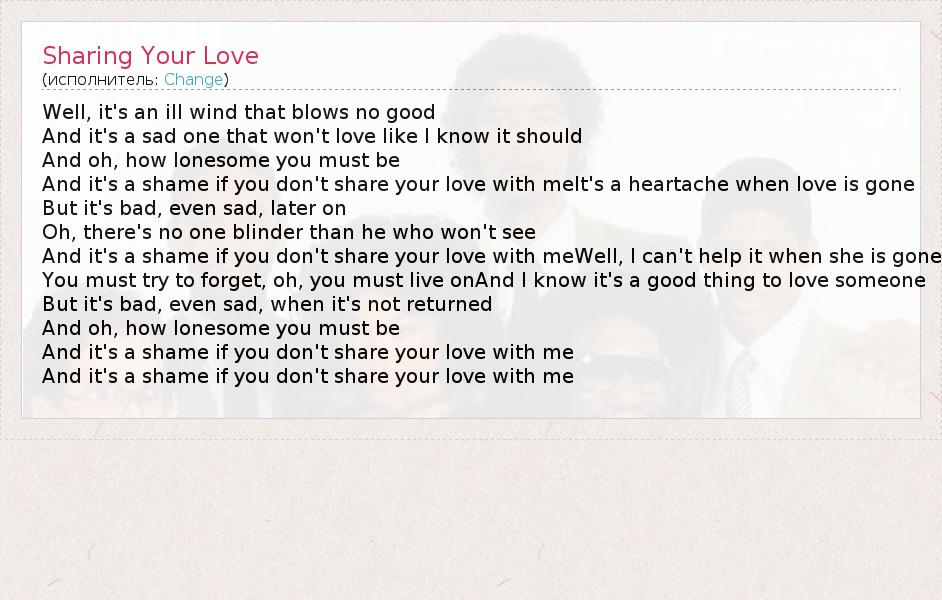А как ты думаешь, о чем песня "Sharing Your Love" ?