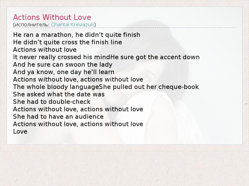 А как ты думаешь, о чем песня "Actions Without Love" ?