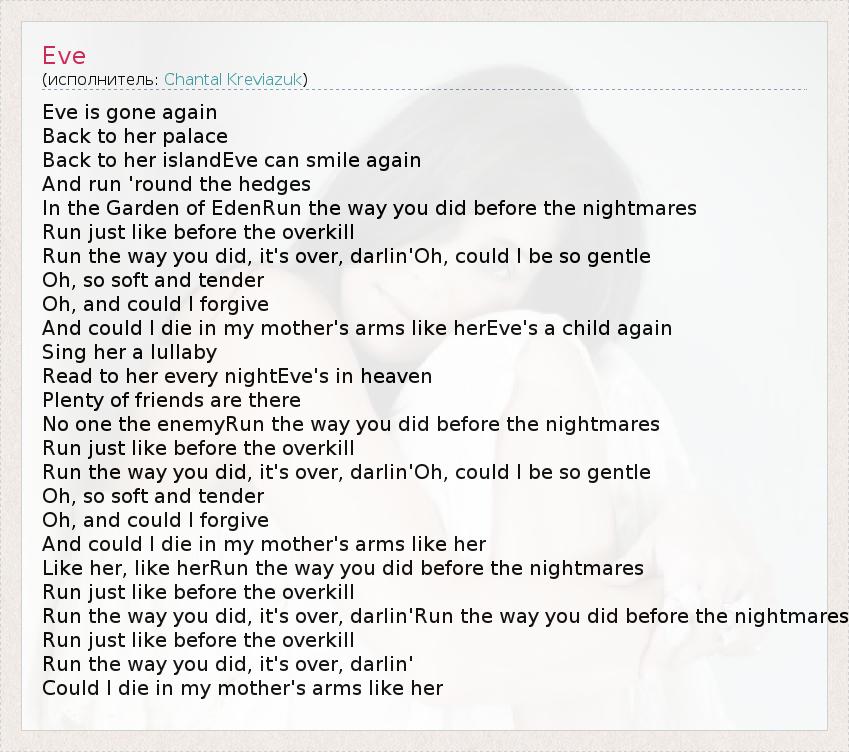 Run the way you did, it's over, darlin'Run the way you did before the nightmares