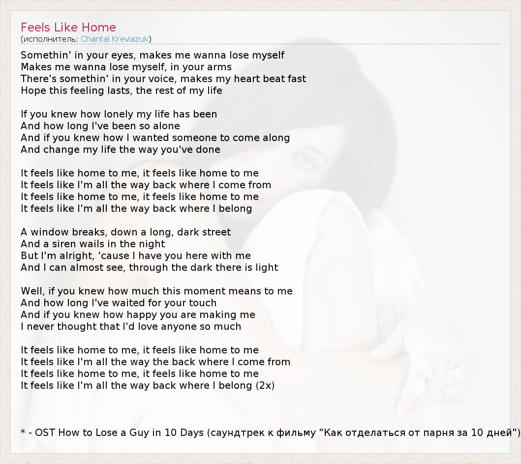 А как ты думаешь, о чем песня "Feels Like Home" ?