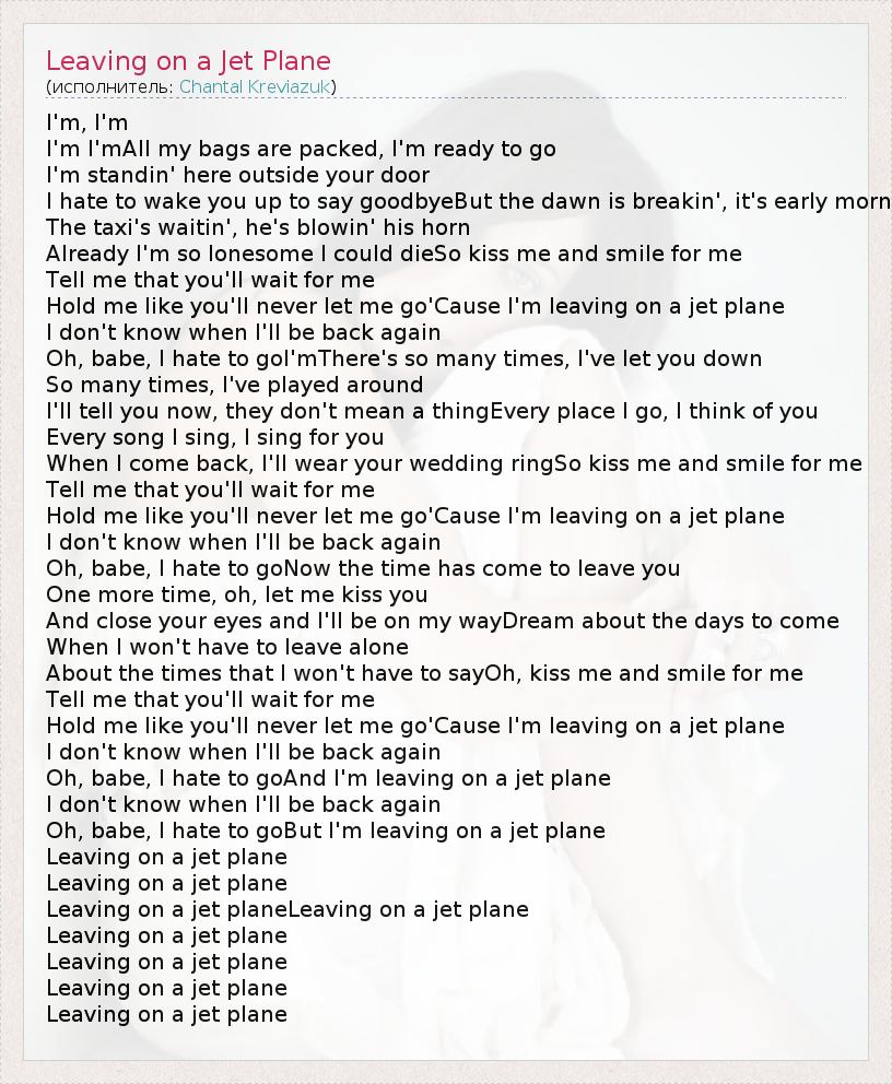 А как ты думаешь, о чем песня "Leaving on a Jet Plane" ?