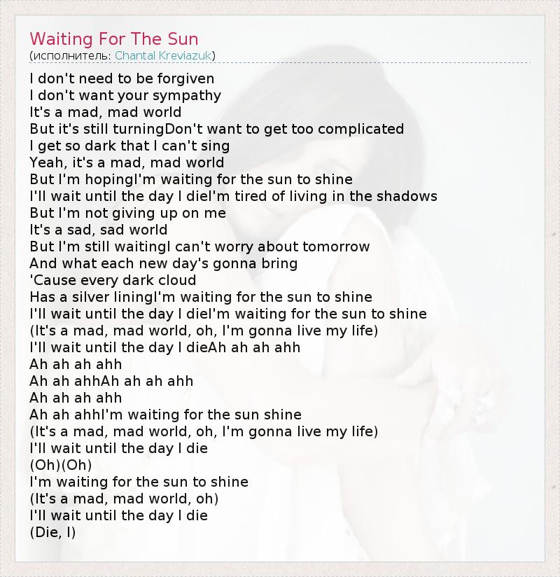 А как ты думаешь, о чем песня "Waiting For The Sun" ?