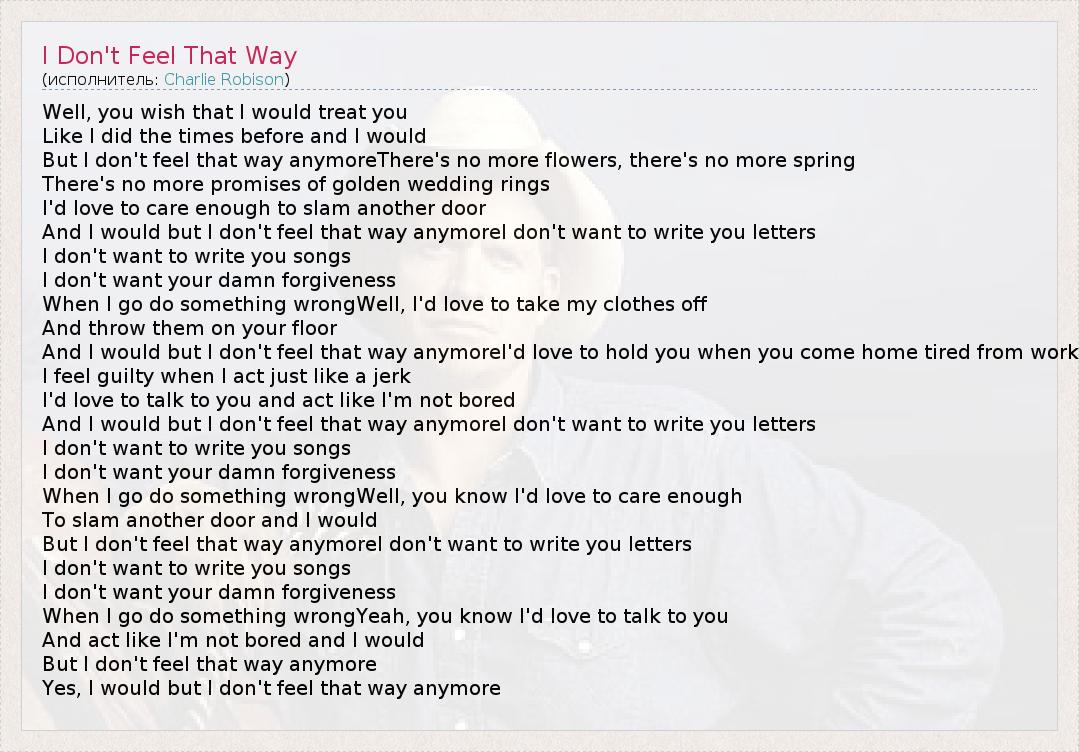 А как ты думаешь, о чем песня "I Don't Feel That Way" ?