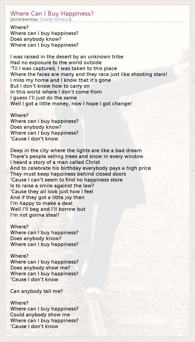 А как ты думаешь, о чем песня "Where Can I Buy Happiness?" ?
