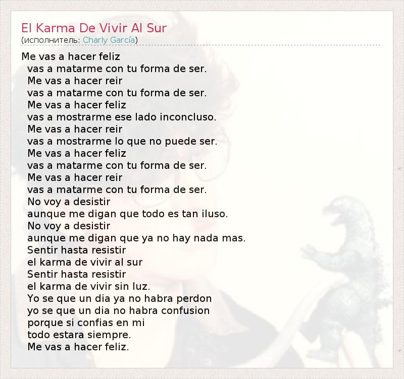 А как ты думаешь, о чем песня "El Karma De Vivir Al Sur" ?