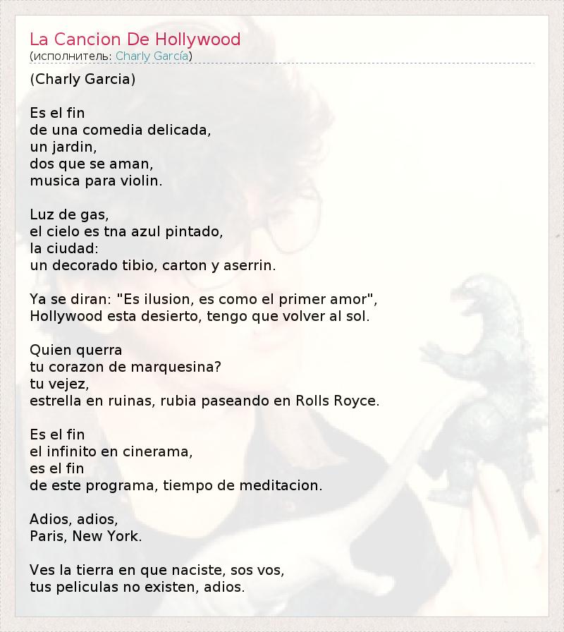 А как ты думаешь, о чем песня "La Cancion De Hollywood" ?