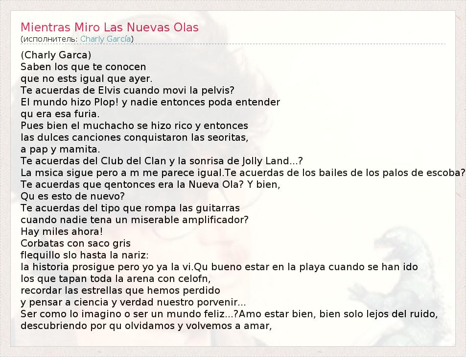 А как ты думаешь, о чем песня "Mientras Miro Las Nuevas Olas" ?