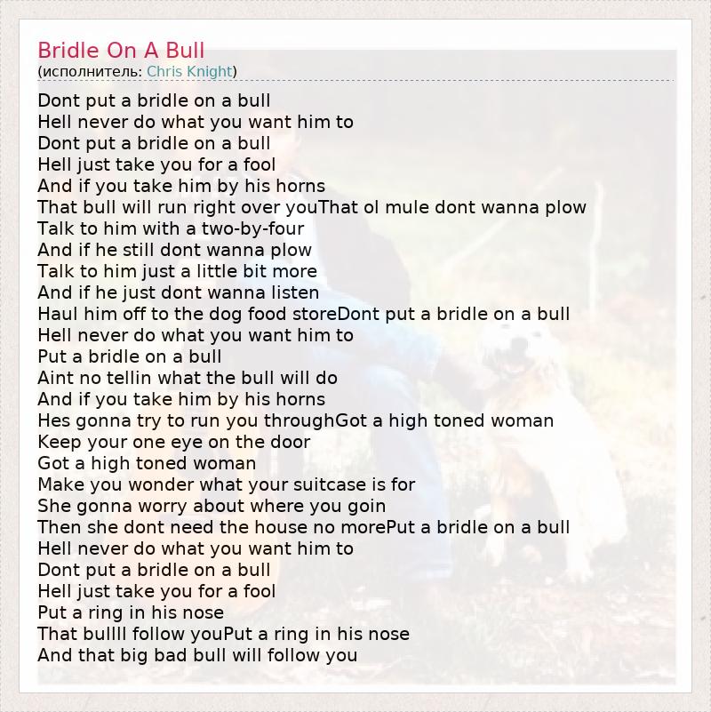 А как ты думаешь, о чем песня "Bridle On A Bull" ?