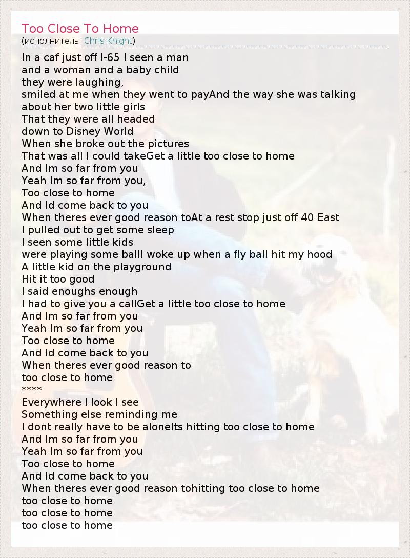 А как ты думаешь, о чем песня "Too Close To Home" ?