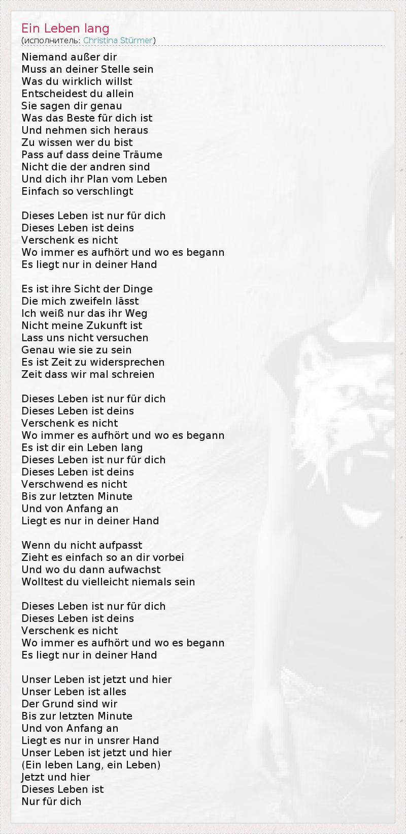 А как ты думаешь, о чем песня "Ein Leben lang" ?
