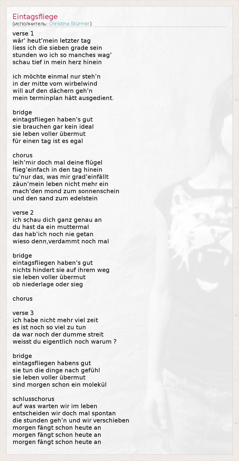 А как ты думаешь, о чем песня "Eintagsfliege" ?