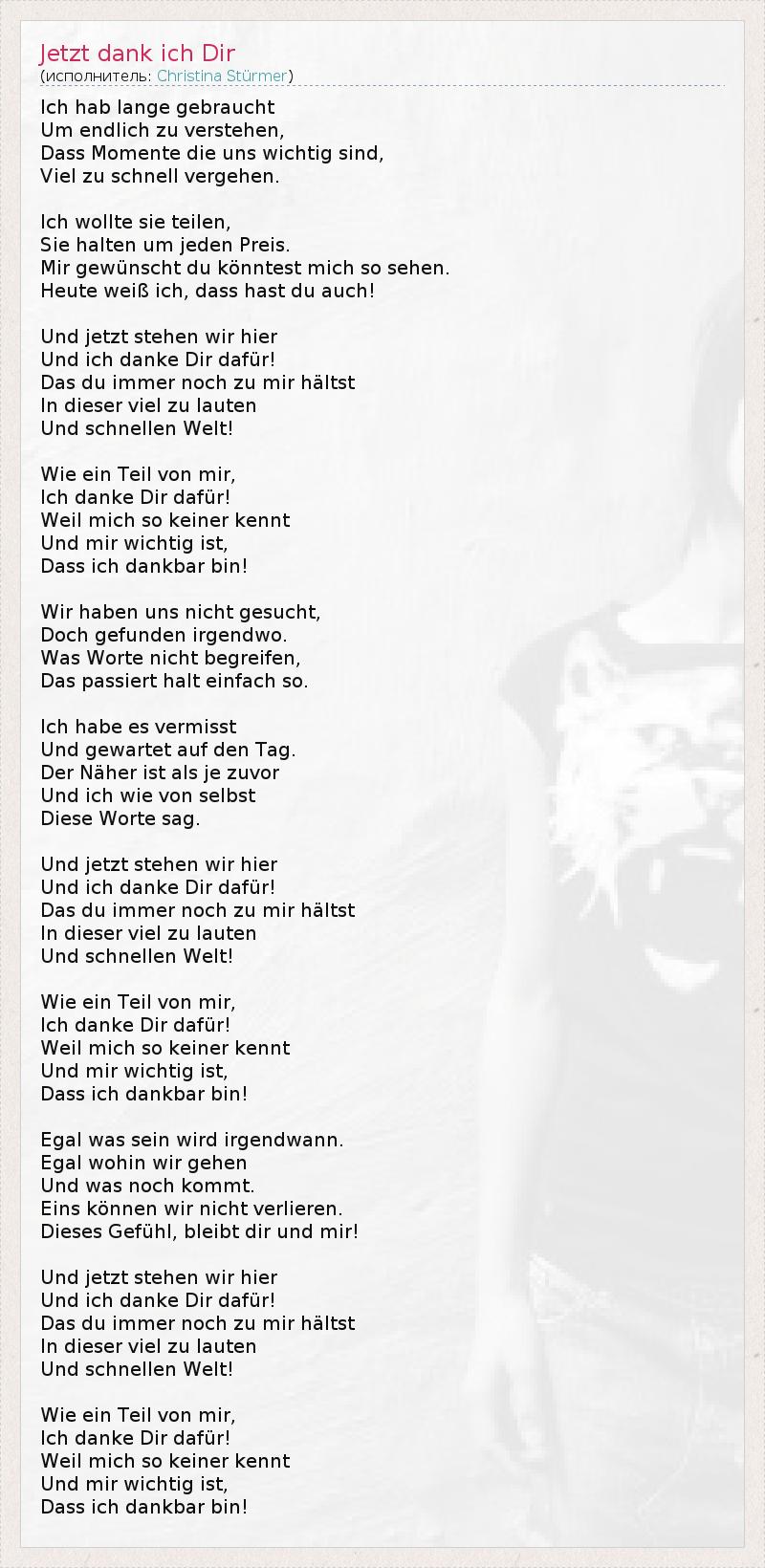 Jetzt dank ich Dir