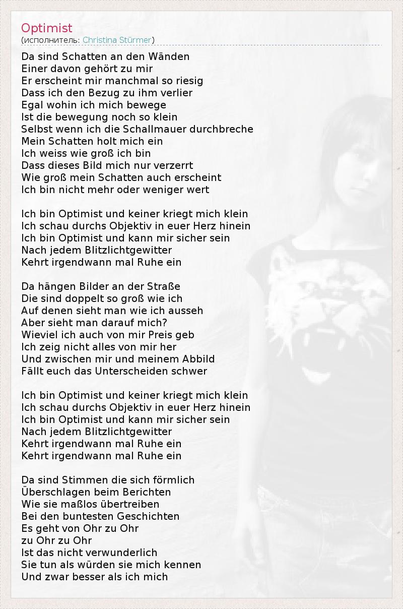 Ich bin Optimist und keiner kriegt mich klein