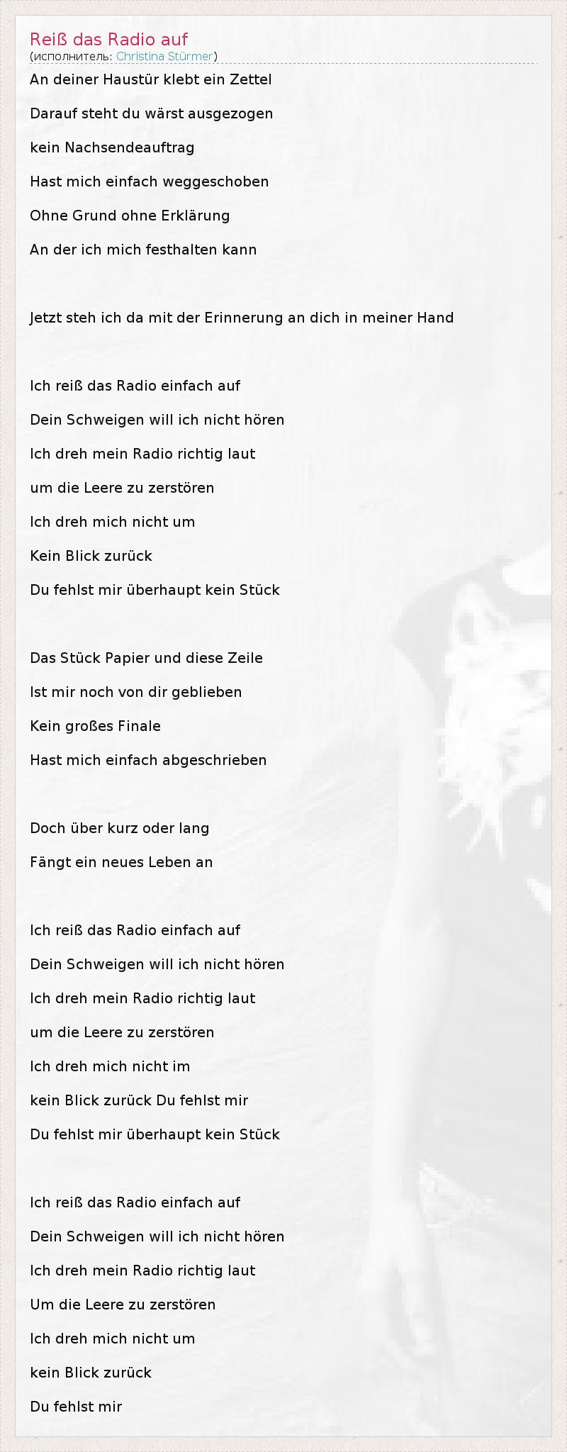 А как ты думаешь, о чем песня "Reiß das Radio auf" ?