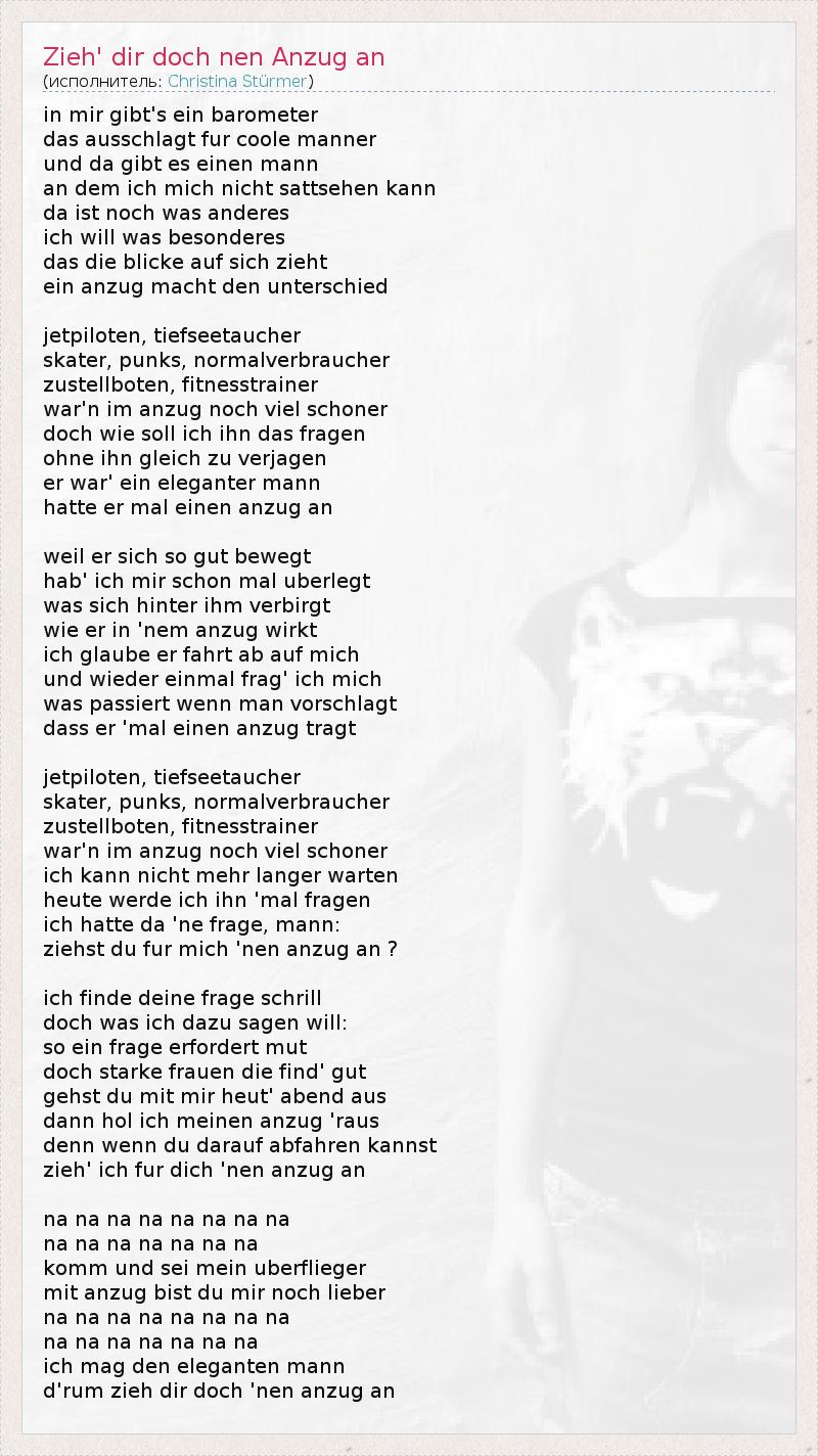 ГлавнаяИсполнителиChristina StürmerZieh' dir doch nen Anzug an